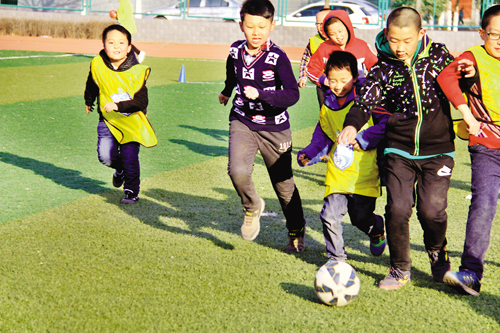 3月12日,原平農(nóng)校足球場內(nèi),小球迷正在進行對抗訓(xùn)練。從小培養(yǎng)兒童熱愛運動,熱愛足球,已成為時下一種教育理念。周末節(jié)假日兒童不再上各種培訓(xùn)班,踢足球,增體質(zhì),堅定自信心,已成為一種習(xí)慣:我運動,我健康,我是最棒的?。ㄆ?攝)