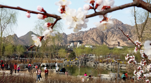 4月4日,游客在原平市天牙山風(fēng)景區(qū)踏青游園。清明小長(zhǎng)假,該市各公園正值早春花卉盛花期,游客在此賞花觀景,感受春的氣息。(褚震 攝)