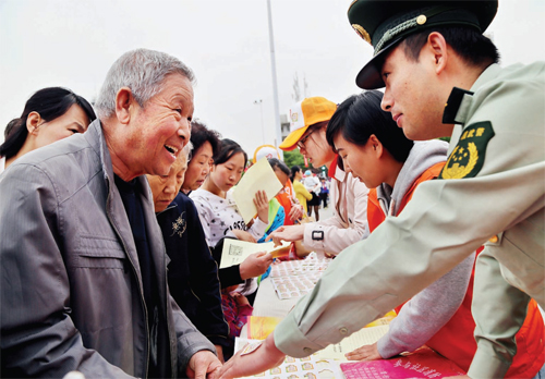 近日,忻州市消防支隊(duì)官兵和消防志愿者一同走上街頭,為申辦全省旅游發(fā)展大會(huì)助力,志愿者們手持宣傳單向過往群眾宣傳消防安全知識(shí),鼓勵(lì)大家積極支持全省旅游發(fā)展大會(huì)相關(guān)活動(dòng)。過往群眾不時(shí)駐足觀看,現(xiàn)場(chǎng)拿出手機(jī)掃描二維碼參與投票。(張志遠(yuǎn) 白耀周 攝)