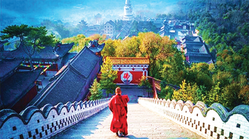 登中臺(tái)翠巖峰。中臺(tái),又被稱為華麗之臺(tái),演教寺供奉儒童文殊。