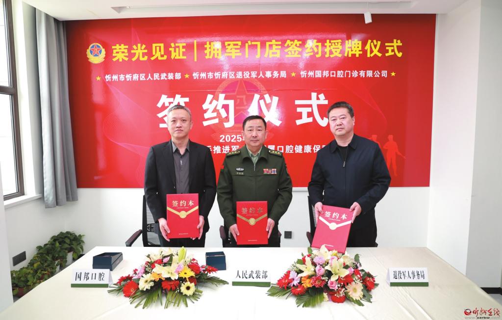 4月8日,忻府區(qū)人民武裝部、忻府區(qū)退役軍人事務局與國邦口腔共同簽署《社會化擁軍戰(zhàn)略合作協議》,共筑軍民融合新篇章。(記者 張存良攝)