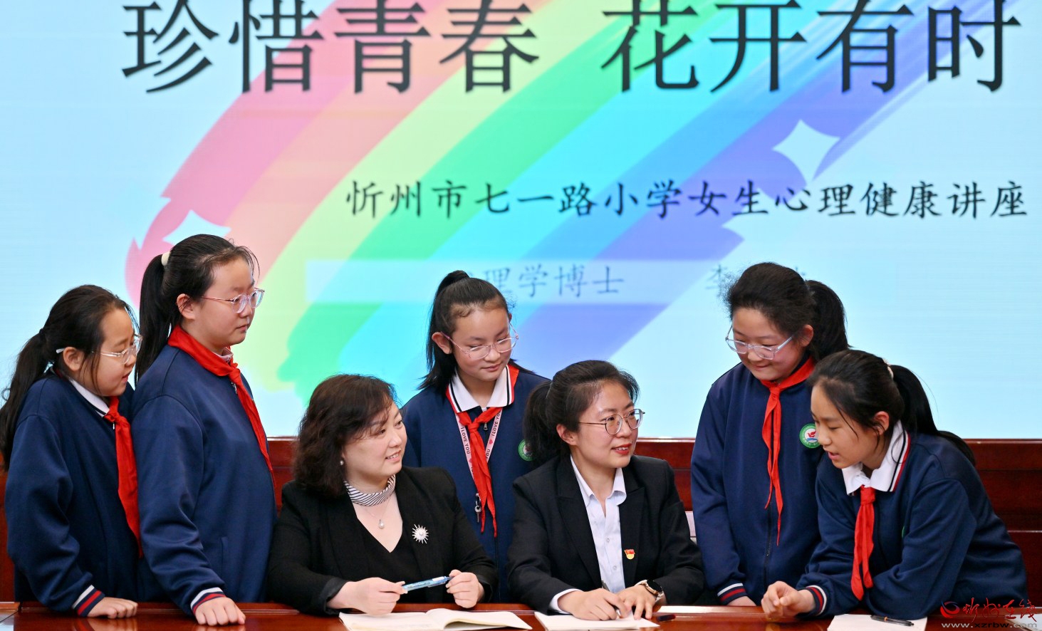 4月18日,忻州市七一路小學特邀忻州師范學院李泳波博士走進校園,為四、五年級女學生開展了一場生動有趣的生理健康知識講座。講座中,李博士通過圖文并茂的PPT和趣味動畫,用通俗易懂的語言講解了青春期身體發(fā)育特點、個人衛(wèi)生護理等知識,并針對學生常見的困惑進行了互動答疑,引導學生樹立正確的健康觀念,學會自我保護。(記者 馮曉磊攝)
