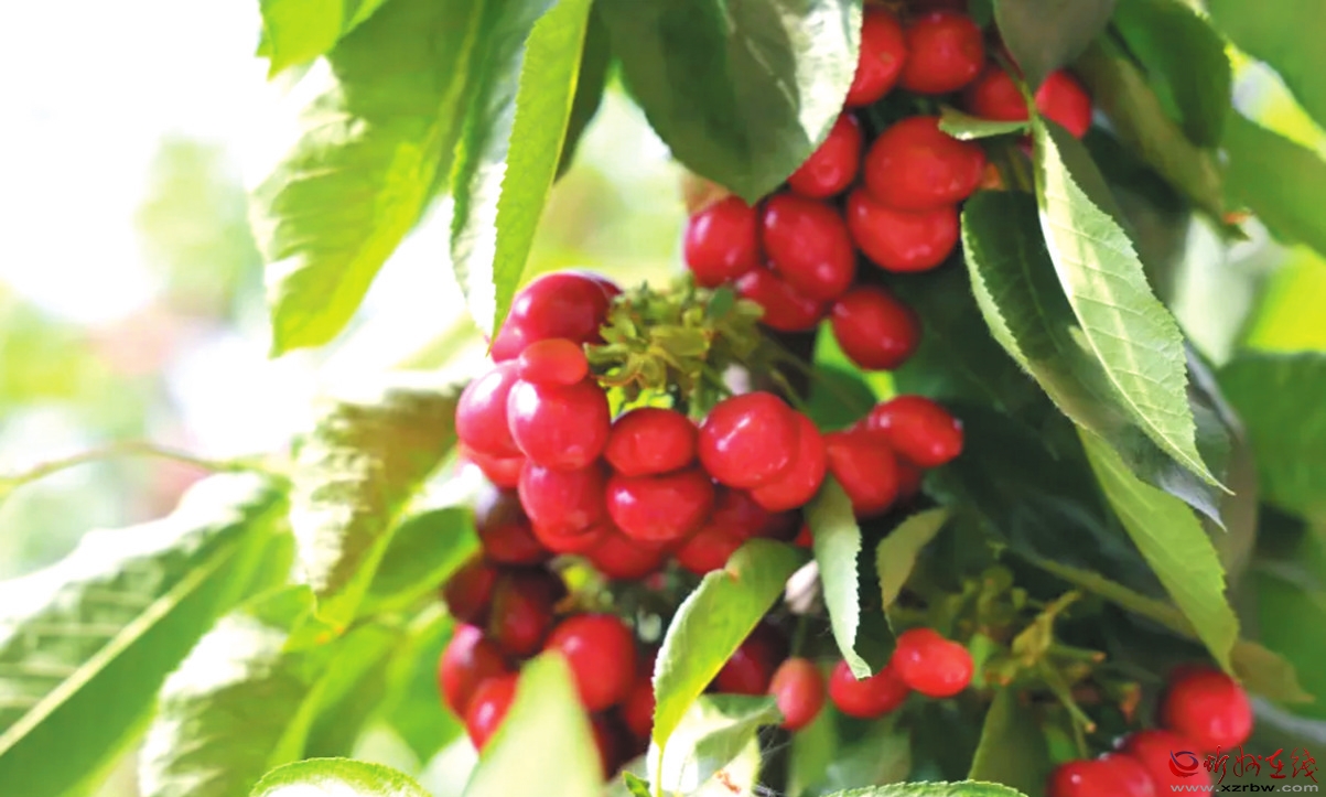 色澤鮮艷的櫻桃掛滿枝頭