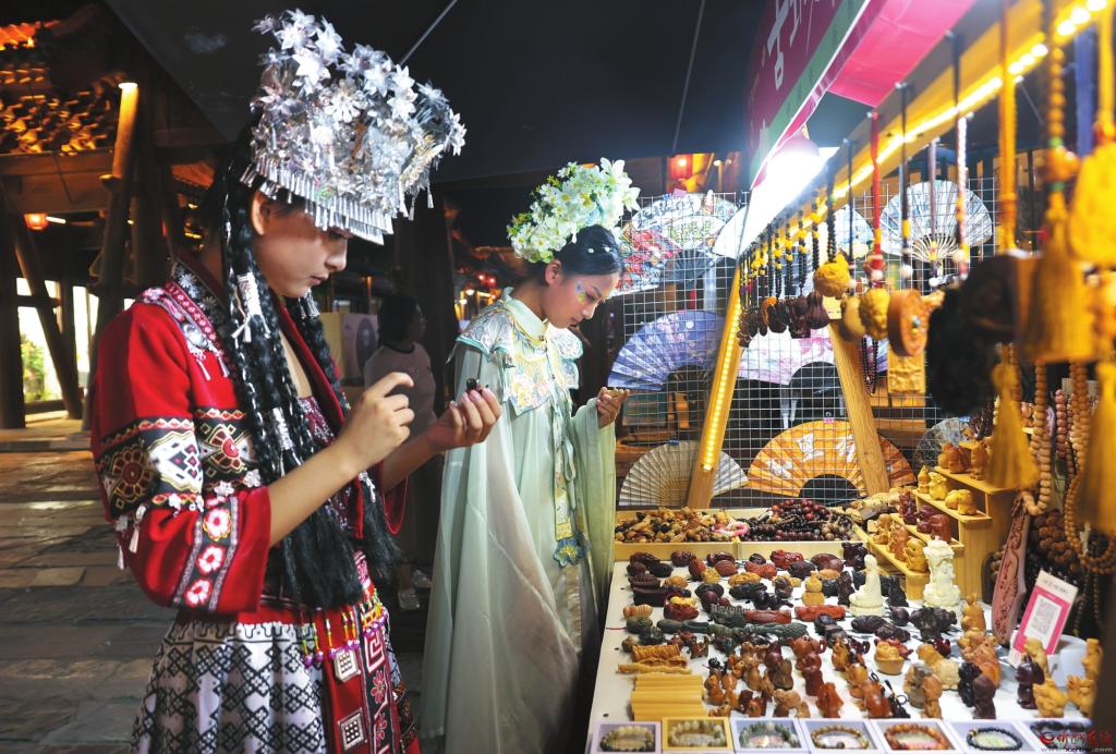 6月1日,游客在忻州古城挑選工藝品,感受古城獨(dú)特的夜經(jīng)濟(jì)魅力。(