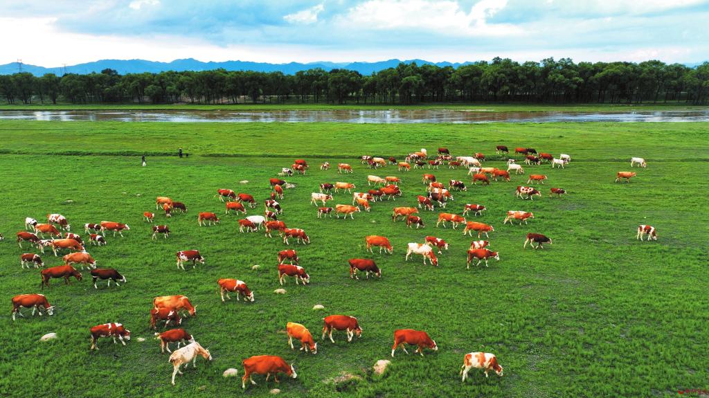 河水長,牧草肥,牛兒壯。定襄縣受祿鄉(xiāng)因地制宜扶持養(yǎng)殖專業(yè)戶做大做強,在沿滹沱河沖擊扇的鹽堿荒灘地帶規(guī)劃出片區(qū)大力發(fā)展肉牛養(yǎng)殖業(yè)。(張晉蘭攝)