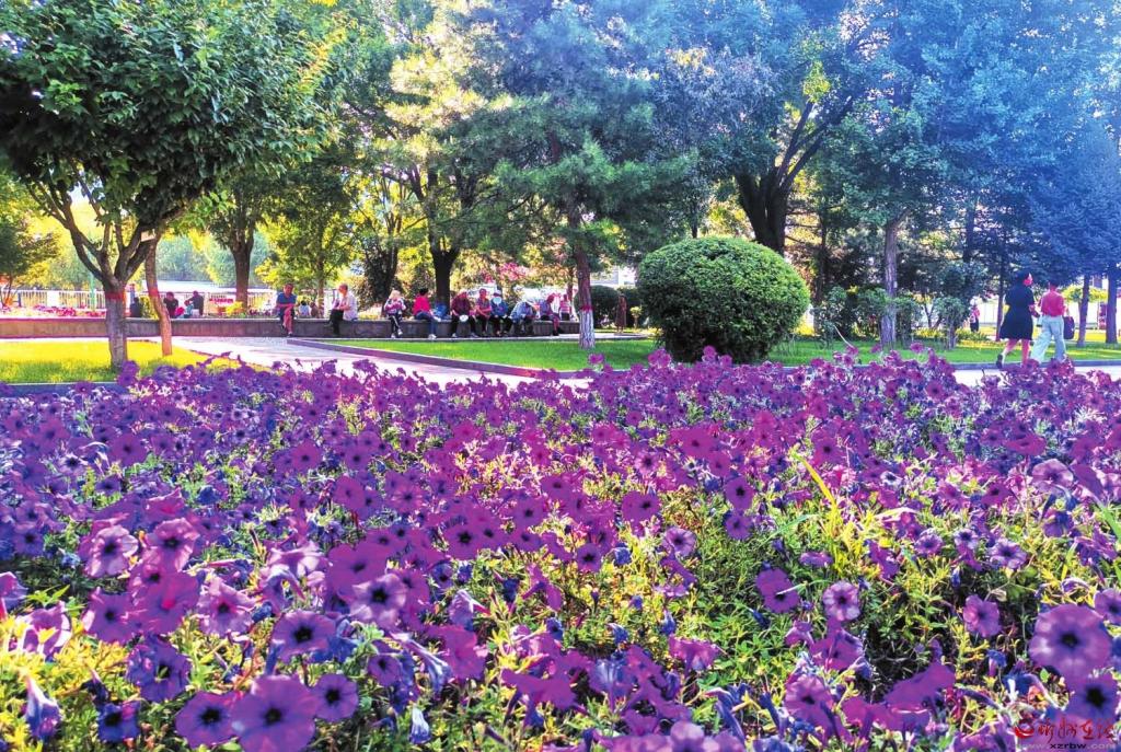 7月22日,市民在忻州城區(qū)體育廣場(chǎng)休閑納涼,享受清風(fēng)徐來、綠意盎然、花團(tuán)錦簇的國(guó)家園林城市之美。(