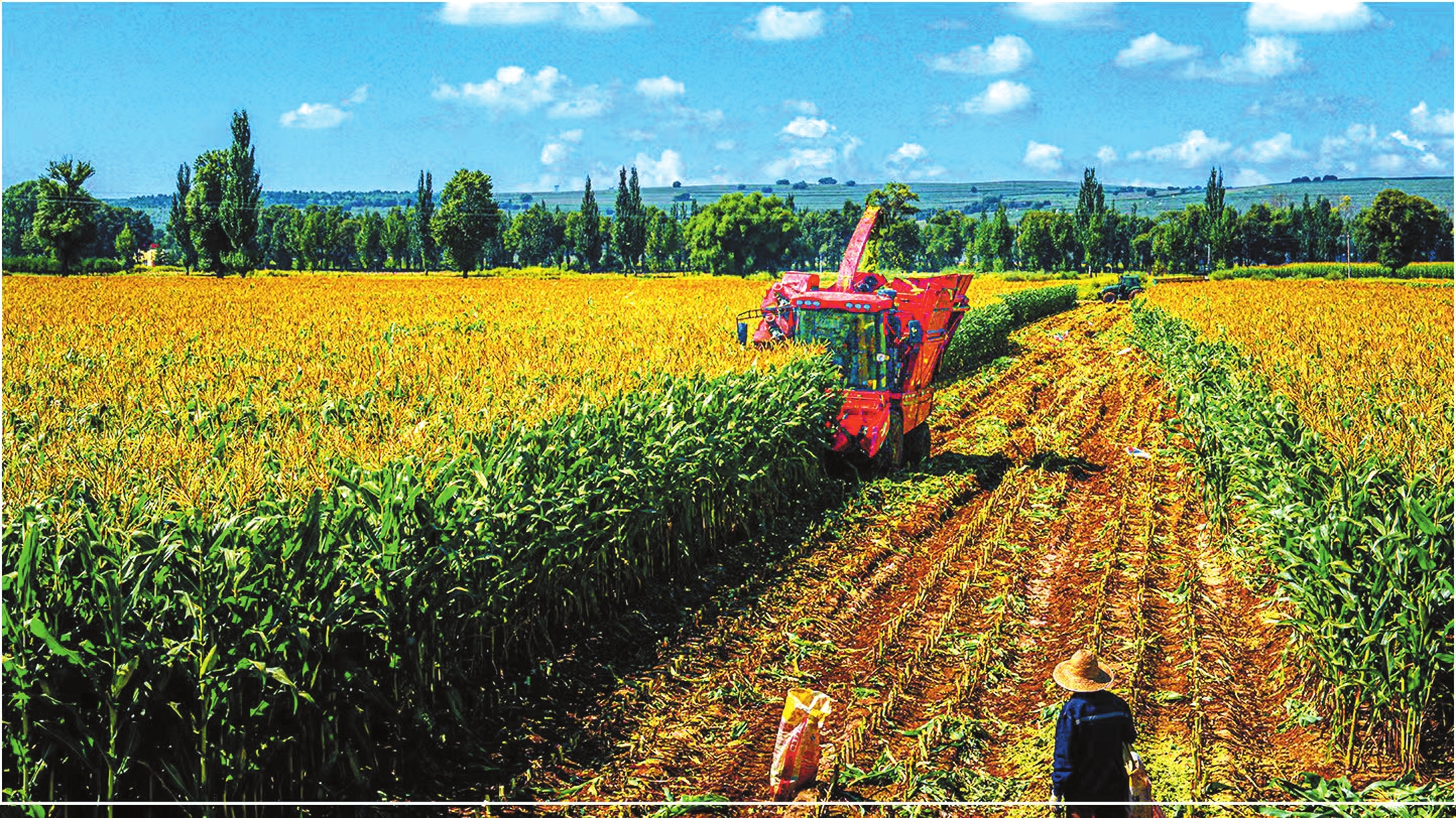 大田作物中,玉米貢獻(xiàn)了秋收“主色調(diào)”:玉米田穗大粒滿(mǎn),金黃果穗綴滿(mǎn)秸稈,機(jī)械化收割設(shè)備穿梭田間。高粱與谷子在丘陵山區(qū)長(zhǎng)勢(shì)喜人,紅透的高粱穗與沉甸甸的谷穗隨風(fēng)搖曳。土豆則以“地下黃金”之姿獲得豐產(chǎn),圓整塊莖從土壤中翻出,分揀后裝車(chē)外運(yùn)。