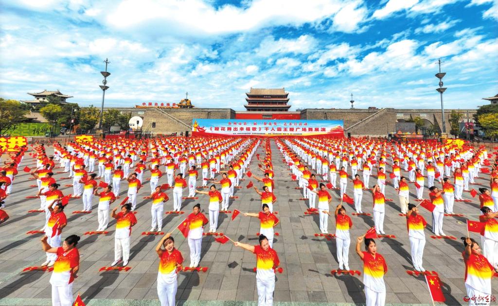 9月26日,來自全市14個縣(市、區(qū))代表隊的近千名舞者齊聚忻州古城,伴隨著配樂《鞭花舞出幸福歌》的激揚曲調(diào),共同演繹霸王鞭廣場舞,并齊聲合唱《歌唱祖國》,為即將到來的國慶節(jié)獻禮?;顒又?,演員們整齊劃一的動作、昂揚向上的精神風貌,生動展現(xiàn)了對美好生活的向往,得到了廣泛好評。常麗琴攝