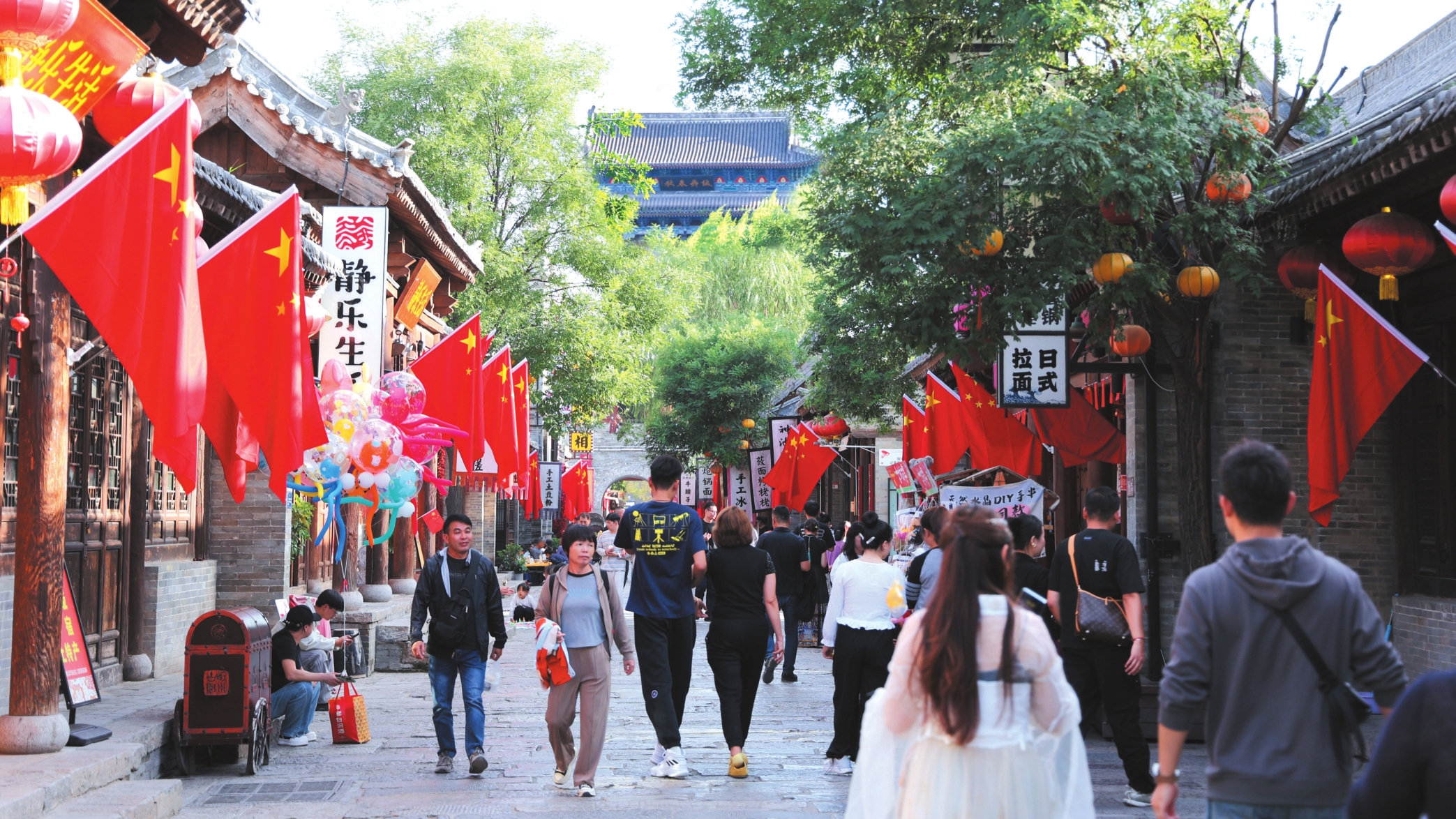 國慶假日期間,忻州古城處處國旗飄揚。 本報記者 范 琛攝
