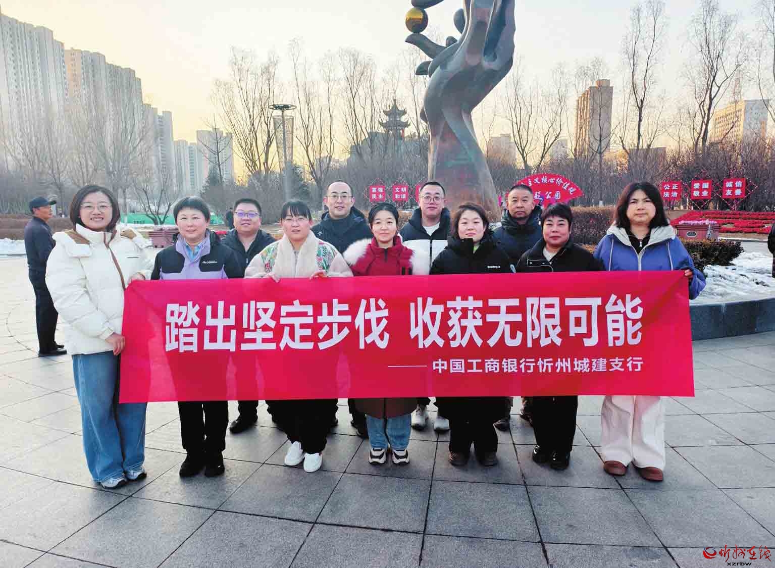 12月27日,工行忻州城建支行組織員工前往市人民公園開展健步走活動(dòng)?;顒?dòng)中,員工們精神煥發(fā)、步伐有力,生動(dòng)詮釋了“踏出堅(jiān)定步伐,收獲無限可能”的主題。此次活動(dòng)不僅展現(xiàn)出支行員工團(tuán)結(jié)進(jìn)取、積極向上的風(fēng)貌,也體現(xiàn)了全行在歲末收官階段腳踏實(shí)地、穩(wěn)步向前的工作姿態(tài)。(本報(bào)通訊員攝)