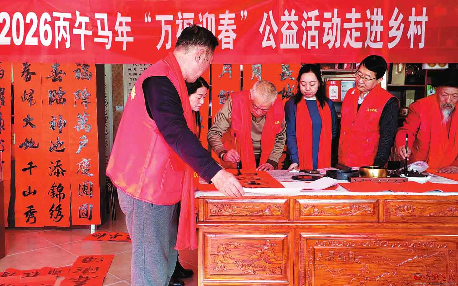神池縣文聯(lián)、縣書法家協(xié)會積極響應(yīng)省市“萬福迎春走進(jìn)鄉(xiāng)村”公益活動號召,發(fā)動本地文學(xué)愛好者創(chuàng)作兼具地域風(fēng)情與年俗韻味的原創(chuàng)春聯(lián),近日,兩單位聯(lián)合組織書法愛好者深入鄉(xiāng)村,為村民義務(wù)書寫春聯(lián)?;顒蝇F(xiàn)場墨香四溢,一幅幅帶著鄉(xiāng)土溫度的春聯(lián)紅遍村頭巷尾,暖心舉措深受群眾交口稱贊。(楊晉明攝)