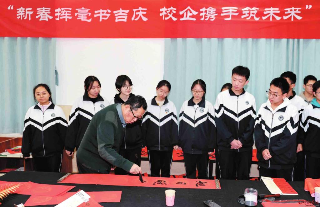 近日,忻州新華書店和忻州現(xiàn)代雙語學(xué)校聯(lián)合舉辦了“新春揮毫?xí)獞c校企攜手筑未來”書寫春聯(lián)活動(dòng)。(記者張存良攝)