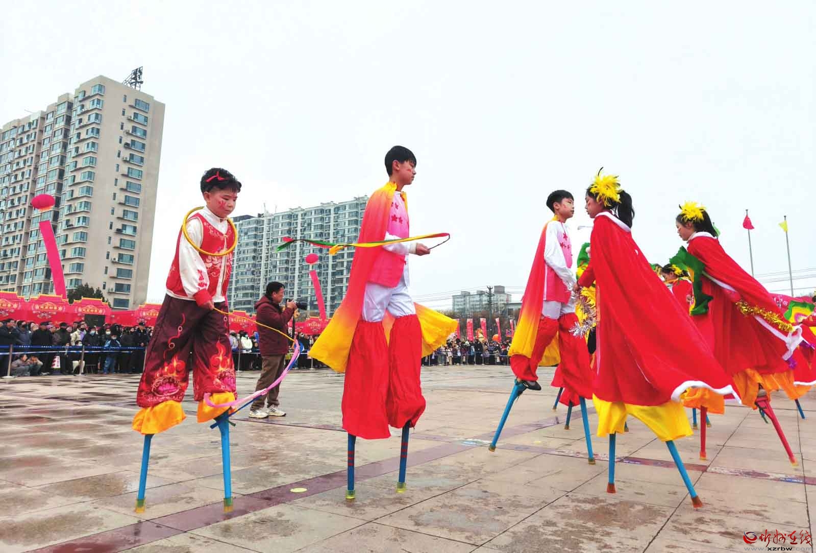 元宵節(jié)期間,定襄縣兒童高蹺隊(duì)以稚嫩卻堅(jiān)定的舞步演繹傳統(tǒng)技藝。(