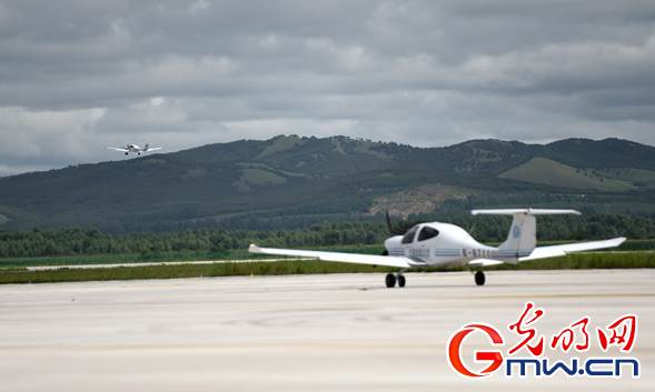 內(nèi)蒙古扎蘭屯成吉思汗機場,飛行學(xué)員們正在駕駛訓(xùn)練機進(jìn)行飛行訓(xùn)練。光明網(wǎng)記者 潘迪攝