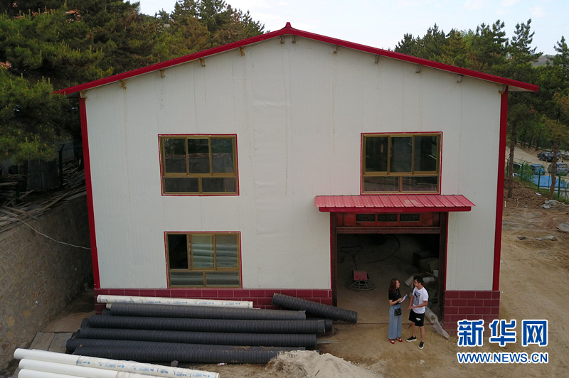 在東鄉(xiāng)族自治縣標(biāo)準(zhǔn)化食品生產(chǎn)加工車間建設(shè)現(xiàn)場,馬娟(左)和朋友商量公司規(guī)劃。(資料圖)新華社記者 范培珅 攝