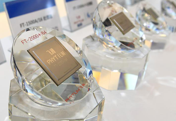 這是在天津濱?!嘘P(guān)村科技園協(xié)同創(chuàng)新展示中心展示的飛騰芯片(2019年1月17日攝)。新華社記者 岳月偉攝
