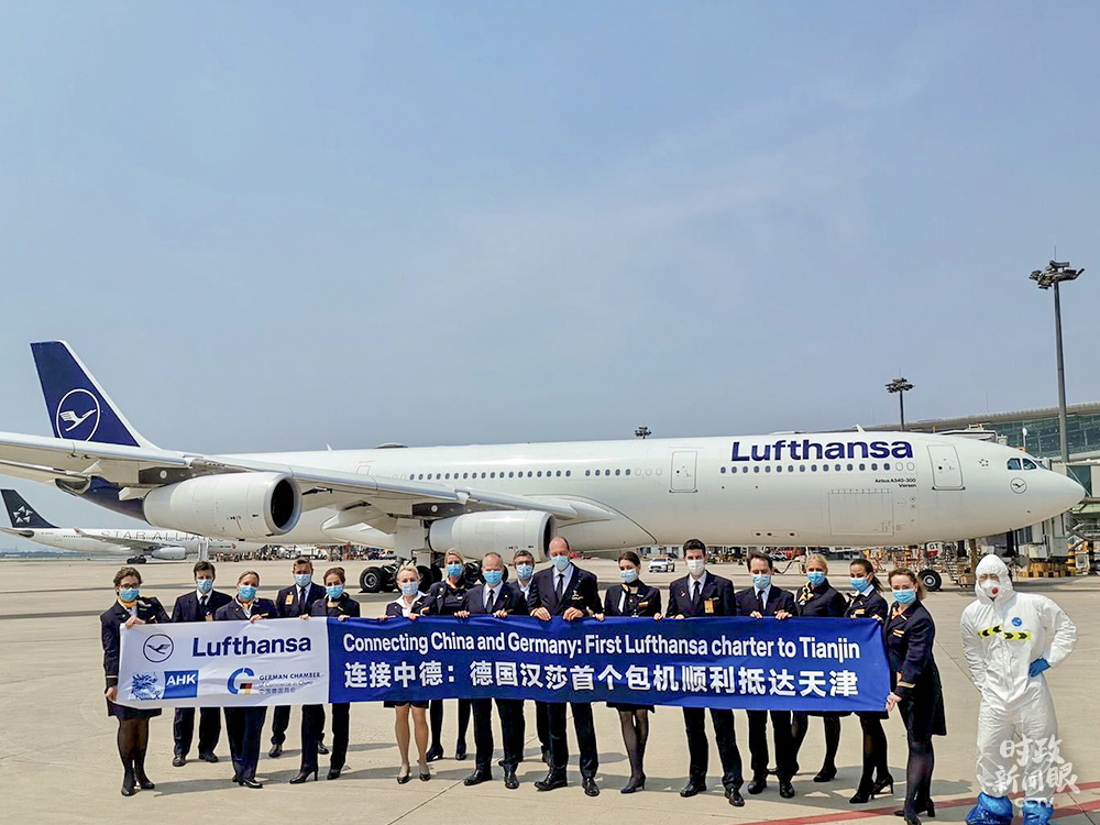 △5月30日,德國漢莎航空LH342航班承運約200名德國企業(yè)家、技術(shù)專家等旅客,自法蘭克福飛抵天津。這是中德之間的首班復工包機,兩國間的“快捷通道”得以實現(xiàn)。