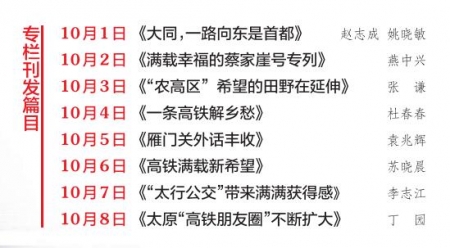 高鐵速度跑出了便捷和美好,并京“同城”夢(mèng)想成真,成為“速度改變生活”的樣本,京晉經(jīng)濟(jì)文化交流更加密切;“蔡家崖號(hào)”穿行呂梁山間,為沿線(xiàn)貧困地區(qū)提供著源源不斷的脫貧助力,帶來(lái)看得見(jiàn)的變化、穩(wěn)得住的幸福。今年國(guó)慶期間,本報(bào)開(kāi)設(shè)《坐著火車(chē)看山西》專(zhuān)欄,記者踏上火車(chē),體驗(yàn)生活,假期8天刊發(fā)8篇稿件,展示“十三五”期間我省經(jīng)濟(jì)社會(huì)發(fā)展的巨大變化。