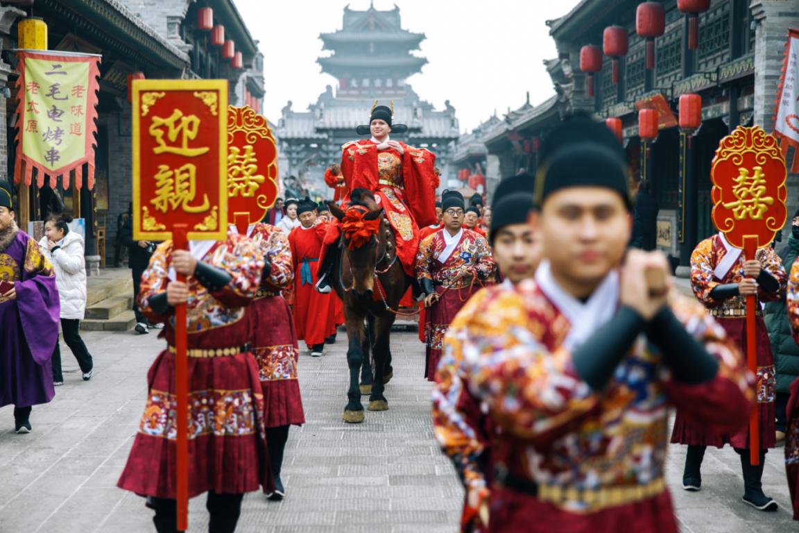 1月4日,一場別開生面的中式復(fù)古婚禮在太原古縣城上演。(主辦方提供)