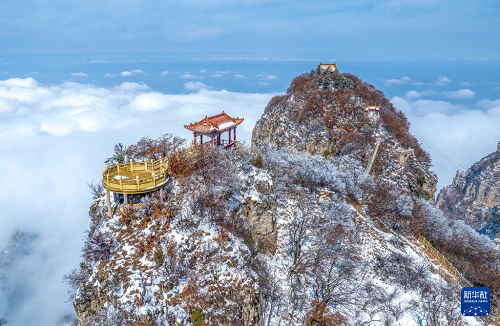 初春時(shí)節(jié),山西省永濟(jì)市五老峰景區(qū)迎來降雪,白雪皚皚,云海翻騰,美不勝收。