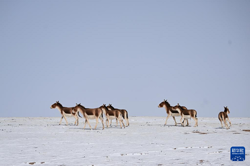 3月6日,一群藏野驢在青海省果洛藏族自治州瑪多縣境內(nèi)的草原上活動(dòng)。(新華社記者 張龍 攝)