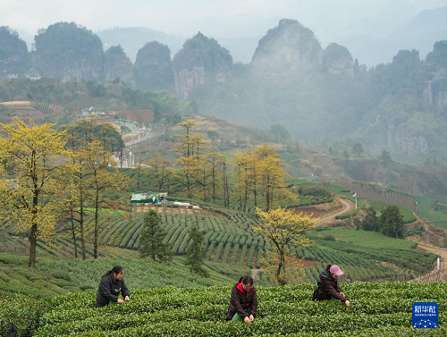 隨著天氣轉(zhuǎn)暖,浙江省新昌縣春茶全面開采。新昌是農(nóng)產(chǎn)品地理標(biāo)志產(chǎn)品“大佛龍井”產(chǎn)地,全縣目前有茶園15.3萬畝,茶葉從業(yè)人員18萬人。