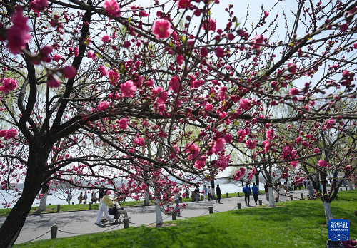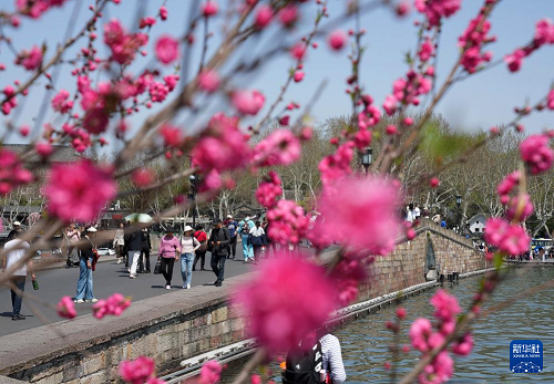 3月24日,游人走在杭州西湖白堤上。(新華社記者 韓傳號(hào) 攝)