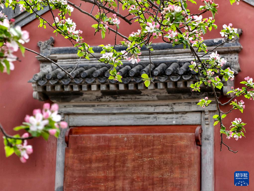 故宮慈寧宮花園內(nèi)海棠盛開(4月1日攝,手機(jī)照片)。(新華社記者 王海燕 攝)