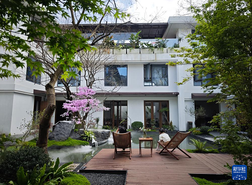 4月6日,在成都西湖公園民宿區(qū),顧客在休憩。(新華社記者 江宏景 攝)