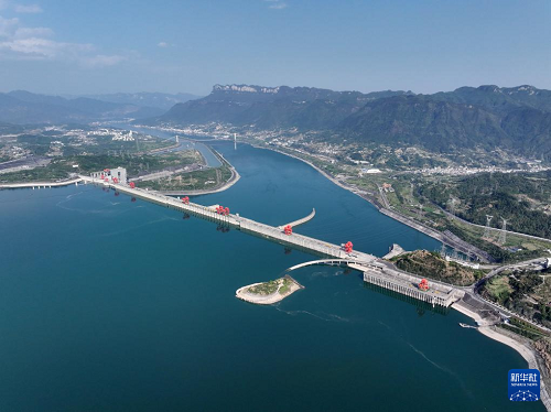 4月8日在湖北省宜昌市秭歸縣拍攝的三峽大壩(無人機照片)。(新華社發(fā) 王輝富 攝)