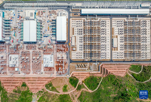 這是4月16日拍攝的建設(shè)中的“疆電入渝”特高壓工程渝北換流站(無人機(jī)照片)。(新華社發(fā) 鄭賢列 攝)