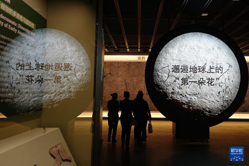 4月27日,游客在遼寧朝陽古生物化石博物館內(nèi)參觀。(新華社記者 李鋼 攝)