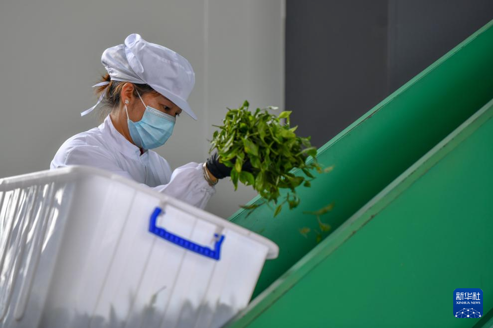 5月8日,工人在麻栗坡縣猛硐鄉(xiāng)新華國茶加工廠作業(yè)。(新華社記者 李溪巖 攝)