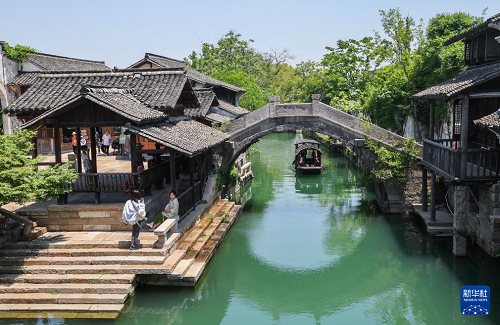 5月12日,游客游覽濮院時(shí)尚古鎮(zhèn)。(新華社記者 徐昱 攝)