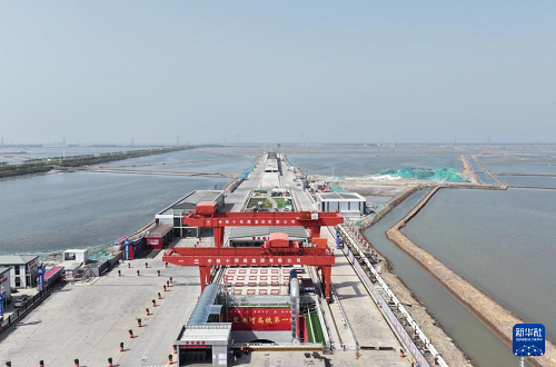 5月19日拍攝的津濰高鐵津沽海河隧道盾構工區(qū)(無人機照片)。(新華社記者 李然 攝)