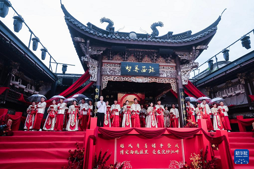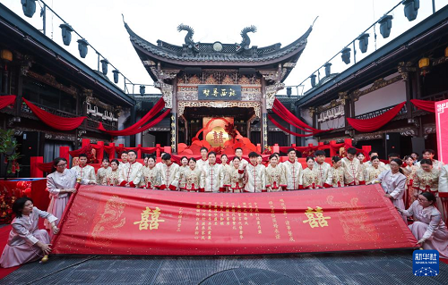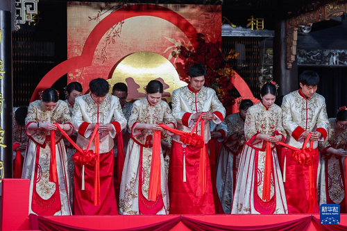 5月20日,18對新人在浙江省諸暨市西施故里景區(qū)內(nèi)參加以“越風(fēng)有喜·諸事暨成——情定西施故里 愛在浣紗江畔”為主題的集體婚禮。本次集體婚禮旨在倡導(dǎo)文明簡約的婚嫁理念,通過精心設(shè)計的集體婚禮儀式,為新人打造既莊重又溫馨的婚禮體驗(yàn),既減輕經(jīng)濟(jì)負(fù)擔(dān)、又傳承美好家風(fēng),倡導(dǎo)婚俗改革文明新風(fēng)尚。