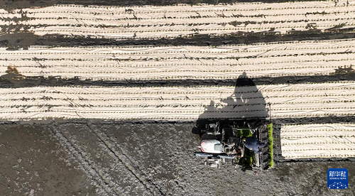 內(nèi)蒙古興安盟扎賚特旗正值水稻插秧季,當(dāng)?shù)剞r(nóng)民應(yīng)用衛(wèi)星導(dǎo)航、紙膜插秧等現(xiàn)代農(nóng)業(yè)技術(shù),緊抓農(nóng)時(shí),田間一派繁忙景象。