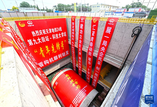 這是5月26日拍攝的天津軌道交通Z4線“青年先鋒號(hào)”盾構(gòu)機(jī)始發(fā)作業(yè)現(xiàn)場(chǎng)。(新華社記者 趙子碩 攝)
