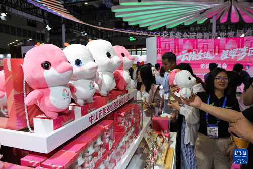 5月23日,觀眾在文博會現(xiàn)場選購第十五屆全運會特許商品。(新華社記者 梁旭 攝)