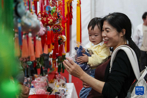 5月29日,市民在慶陽香包民俗文化節(jié)非遺沉浸體驗區(qū)選購香包。(新華社記者 郎兵兵 攝)