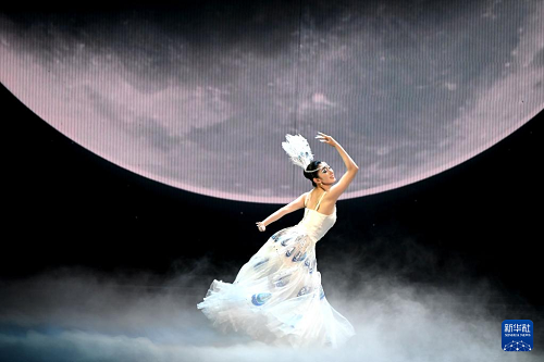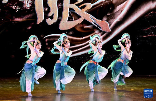 6月8日,中國殘疾人藝術團演員在甘肅敦煌大劇院表演大型情景音畫劇《千手千眼》。(新華社發(fā) 張曉亮 攝)