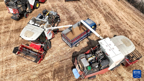時下,河北省邢臺市隆堯縣61萬畝小麥正值收獲季,當?shù)剞r(nóng)民搶抓晴好天氣開展機收作業(yè)。
