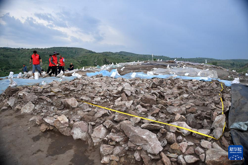 6月18日,宣化鄭家溝遺址考古發(fā)掘項(xiàng)目隊(duì)員在一號(hào)積石冢工作。(新華社記者 王曉 攝)