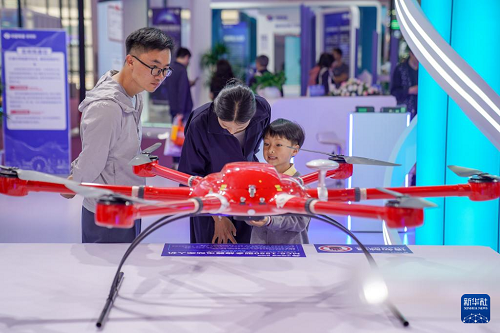 6月22日,觀眾在第9屆南博會(huì)上參觀一款無(wú)人機(jī)。(新華社發(fā) 彭奕凱 攝)
