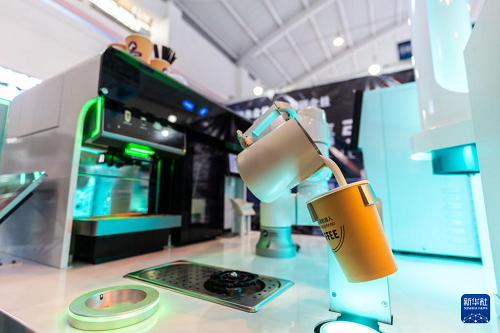 6月22日,拉花咖啡機(jī)器人在第9屆南博會(huì)上制作咖啡。(新華社記者 高詠薇 攝)