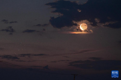 這是6月23日凌晨在黑龍江省佳木斯市富錦市硯山鎮(zhèn)拍攝的昴星團伴月。(新華社發(fā) 曲玉寶 攝)