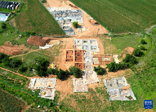 這是6月24日拍攝的東山頭遺址考古發(fā)掘現(xiàn)場(無人機照片)。(新華社發(fā) 河北省文物考古研究院供圖)