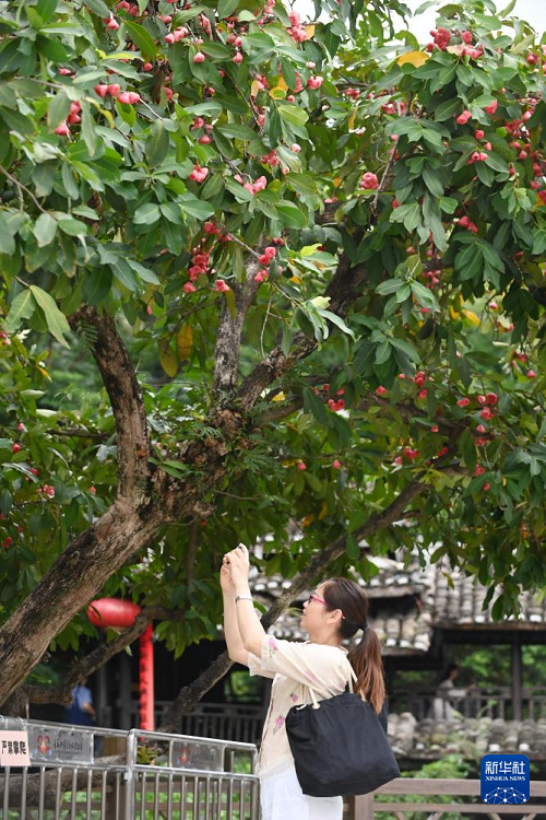 6月29日,在廣西南寧市古城路,市民在拍攝一棵結(jié)果的蓮霧樹(shù)。(新華社記者 陸波岸 攝)