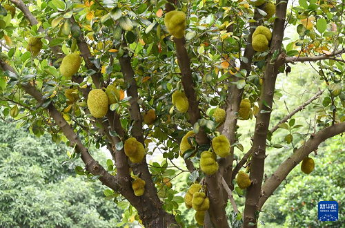 這是6月29日在南寧市金浦路拍攝的結(jié)果的木菠蘿樹(shù)。(新華社記者 陸波岸 攝)