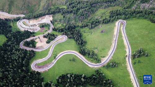 這是7月2日拍攝的新疆阿禾公路上(無(wú)人機(jī)照片)。(新華社記者 張嘯誠(chéng) 攝)